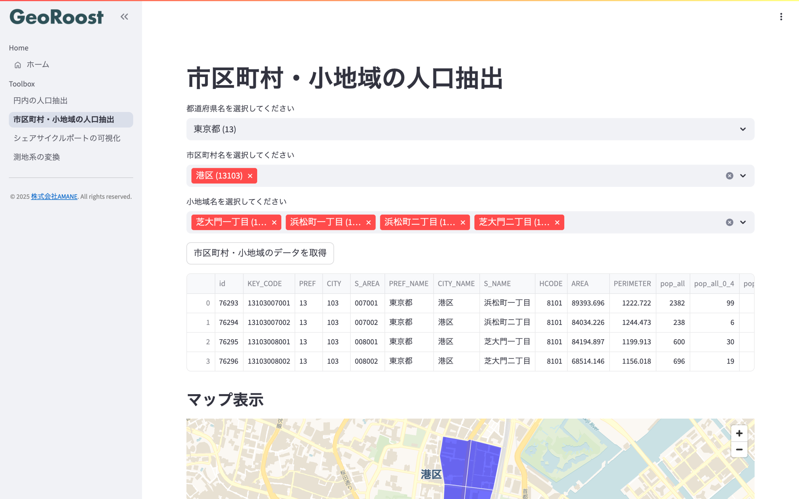 - 市町村・小地域の人口抽出