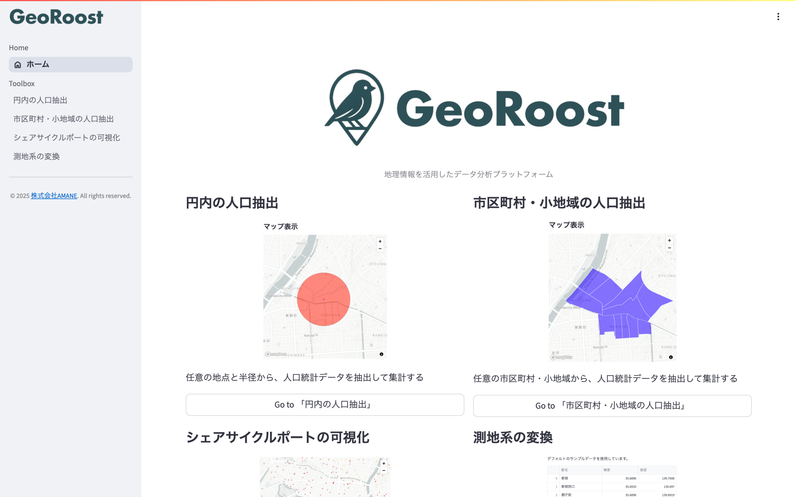 GeoRoostの主要機能