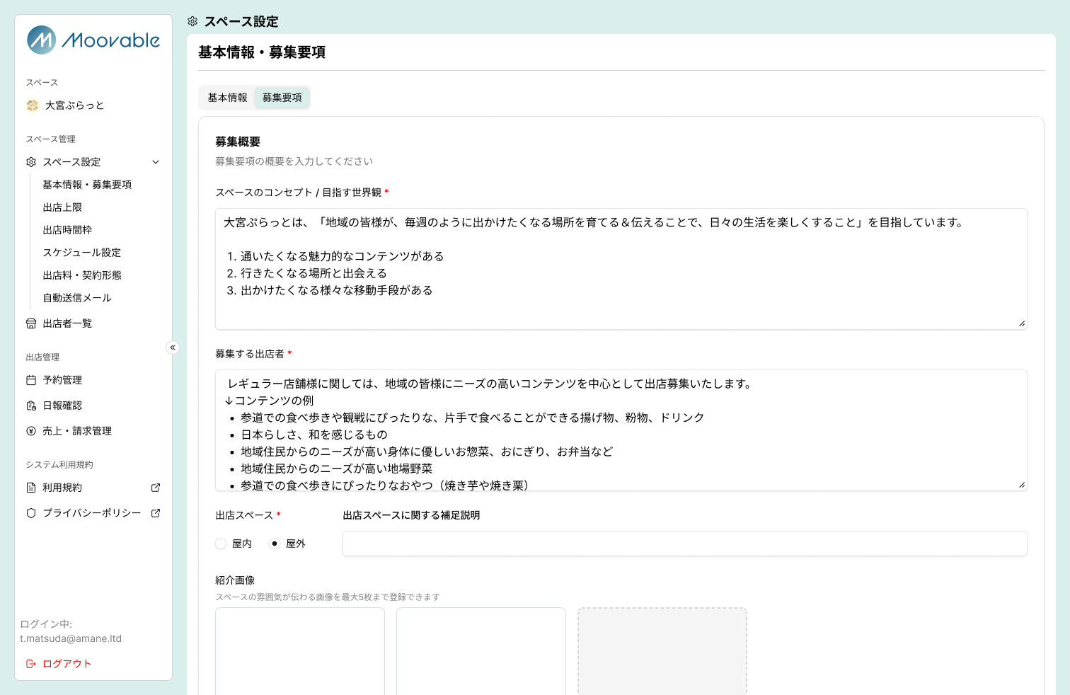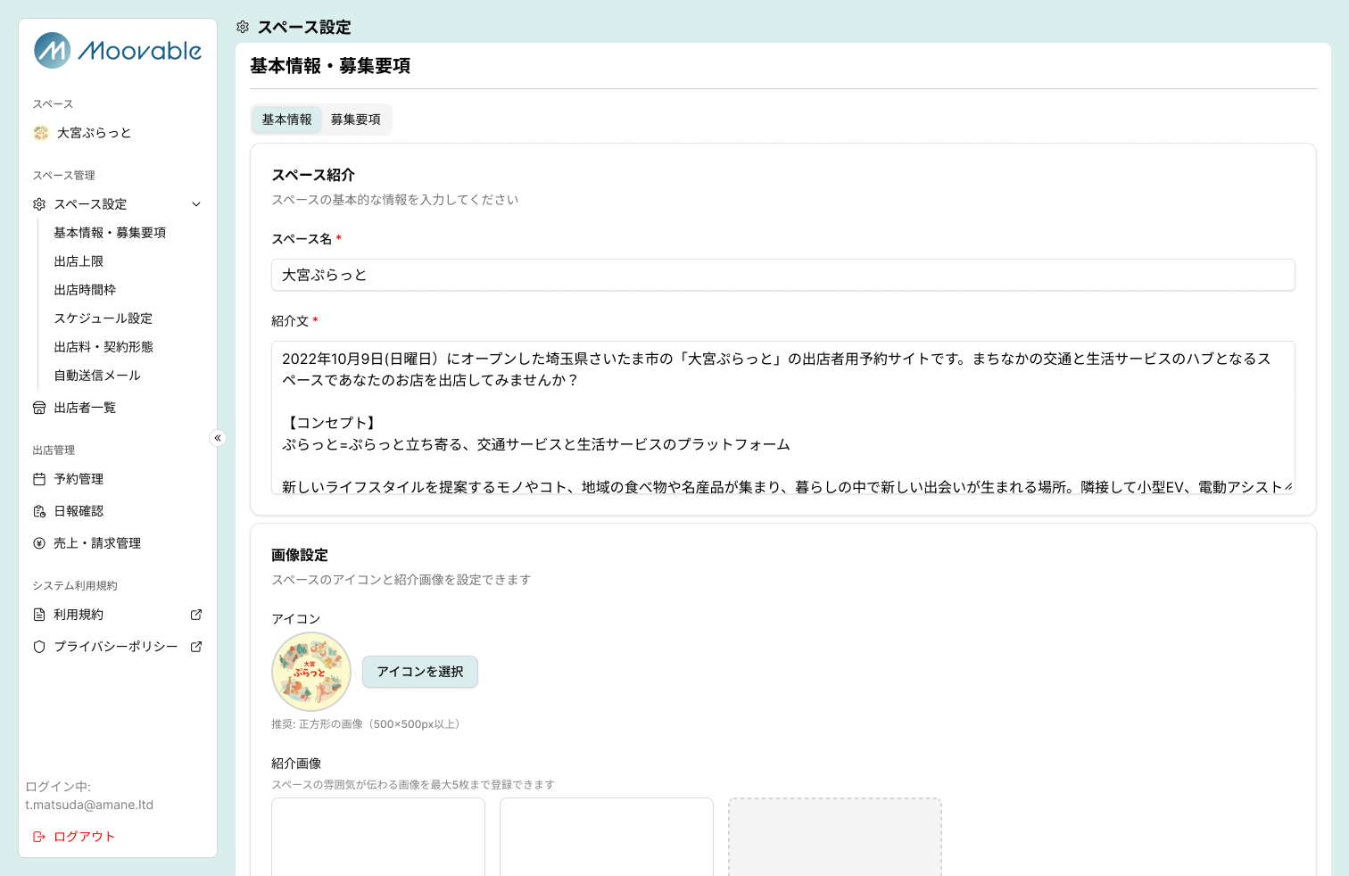 ■スペース情報設定(募集要項作成、スペース紹介HP作成)