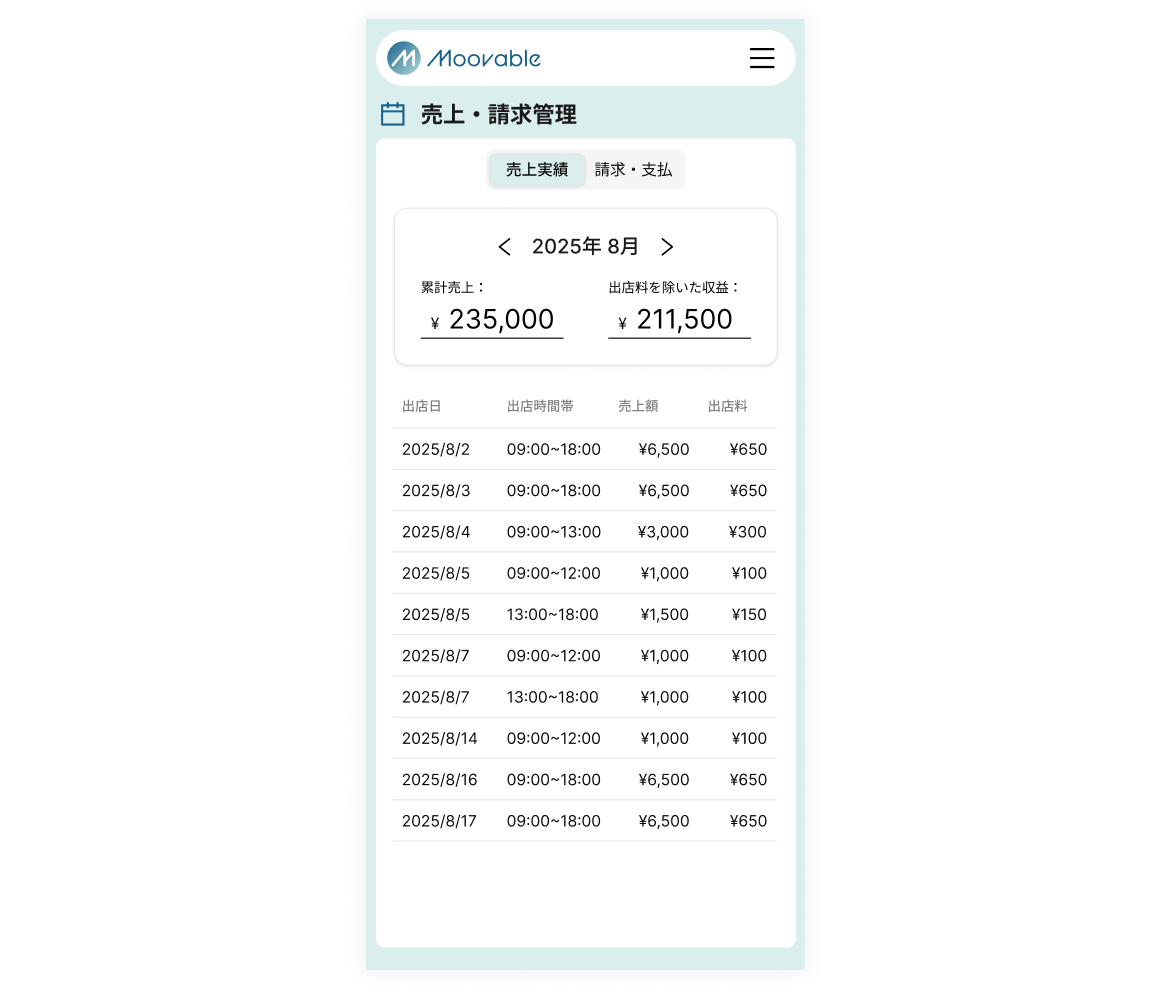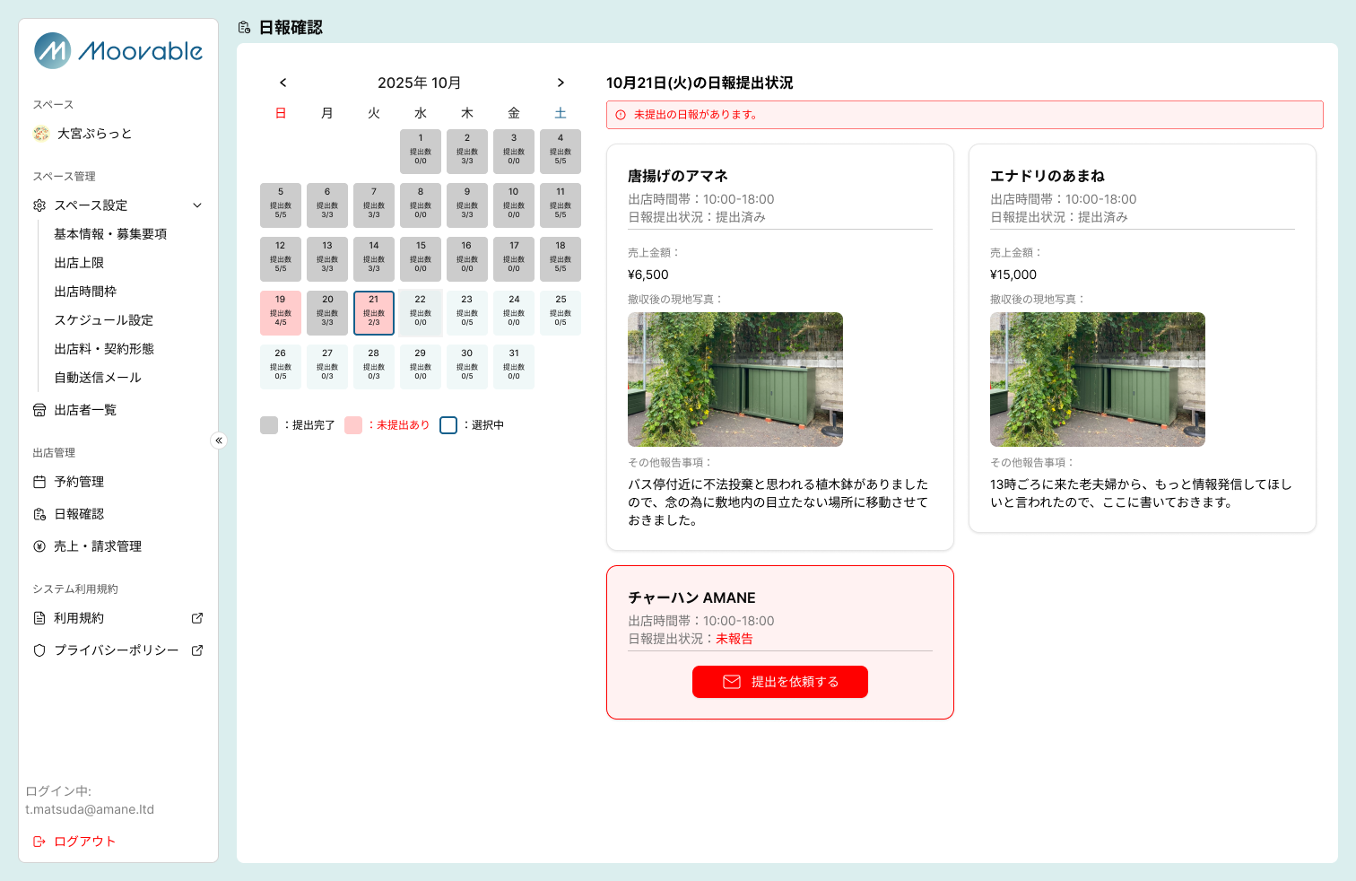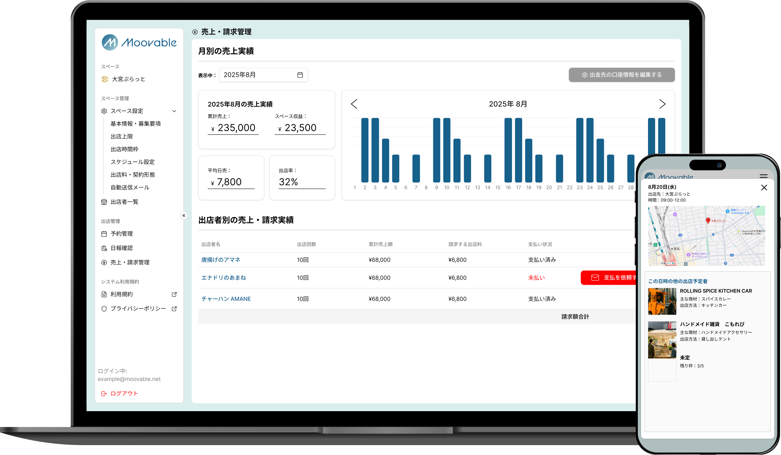 Moovableは、キッチンカー、トレーラーハウス、屋台等の「可動産」を誰もがマネジメントできるようになるツールです。